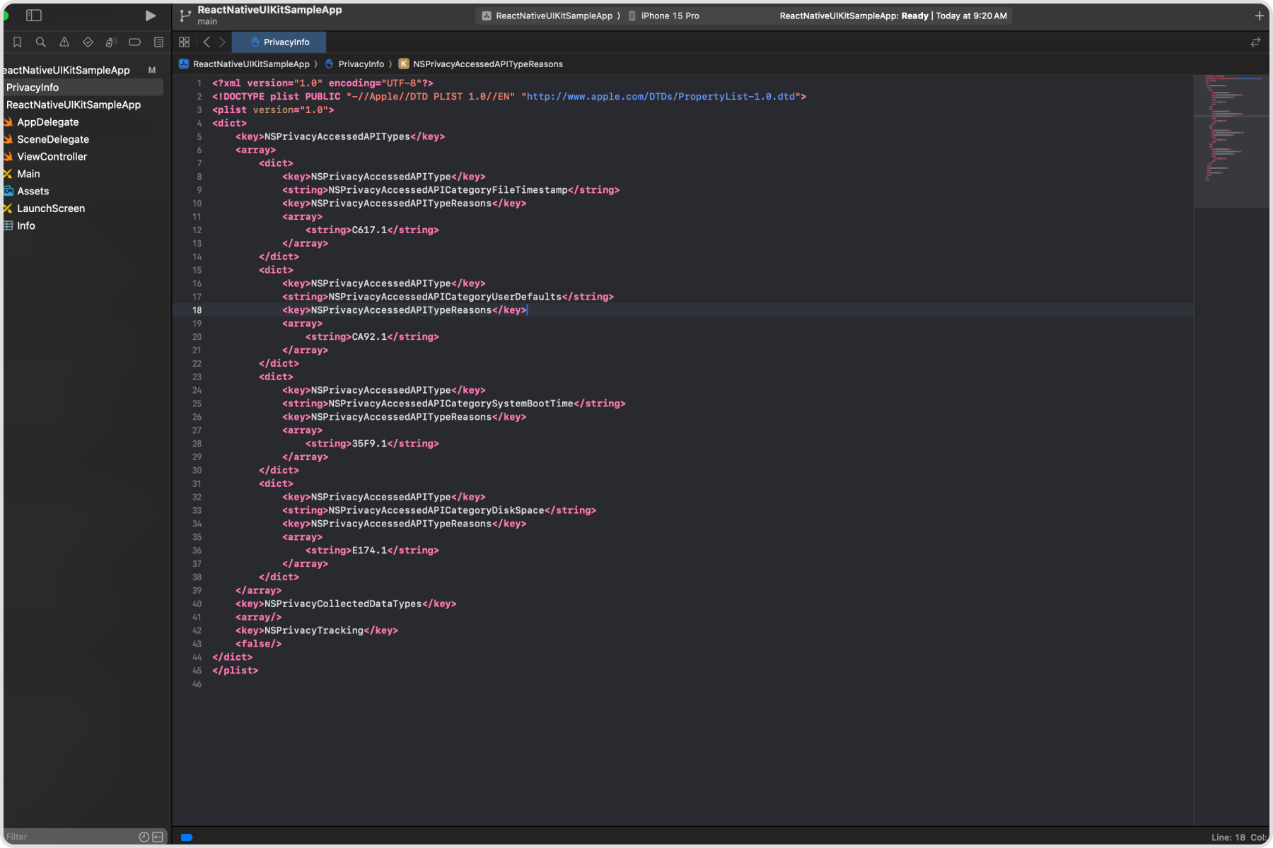 Privacy Manifestfile. You need to replace the content of the file with the manifest shared above.